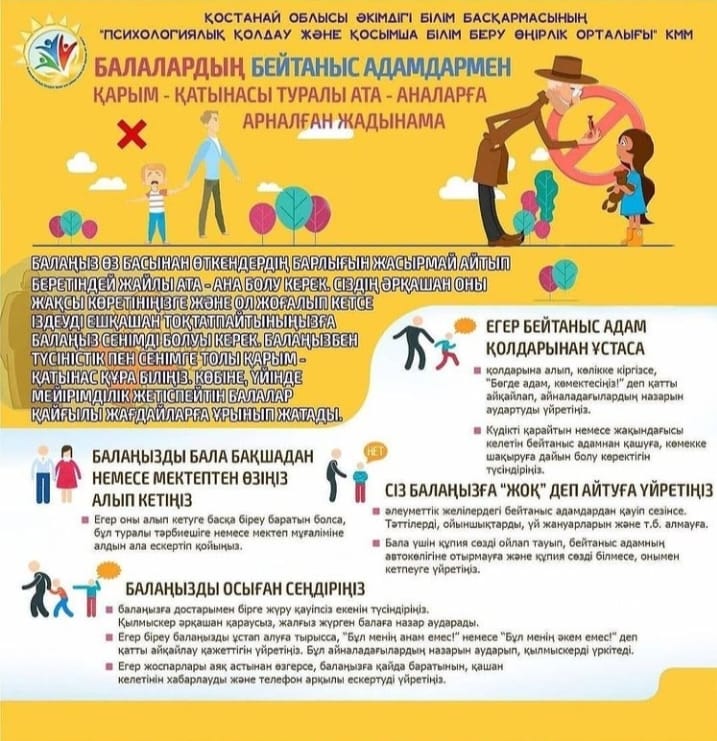 Балалардың бейтаныс адамдармен қарым қатынасы туралы ата-аналарға арналған жадынама