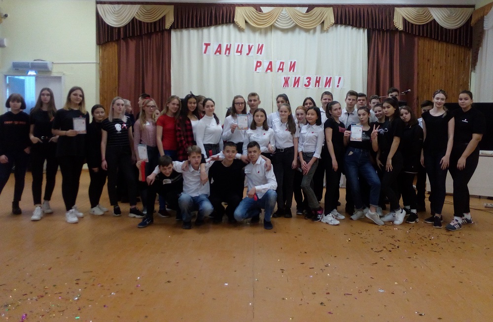 Сегодня в школе прошел флешмоб, приуроченный ко Всемирному дню борьбы со СПИДом, который отмечается ежегодно 1 декабря. В актовом зале собрались команды 8-10 классов, которые своими танцевальными композициями и призвали всех присутствующих к ведению здорового образа