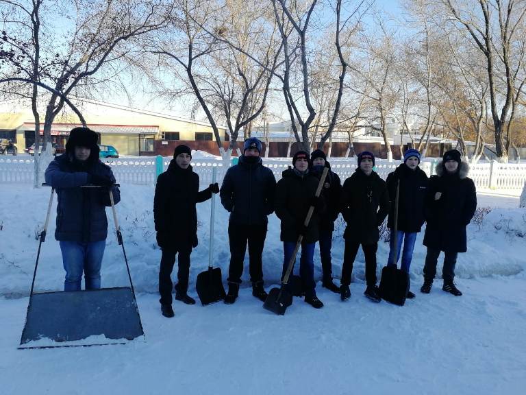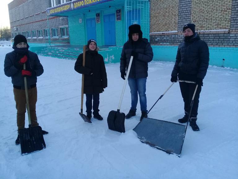 Работали слаженно, с улыбкой. Дружной компанией очищать от снега школьный двор оказалось намного интереснее. На площадке перед входом в школу теперь чисто!