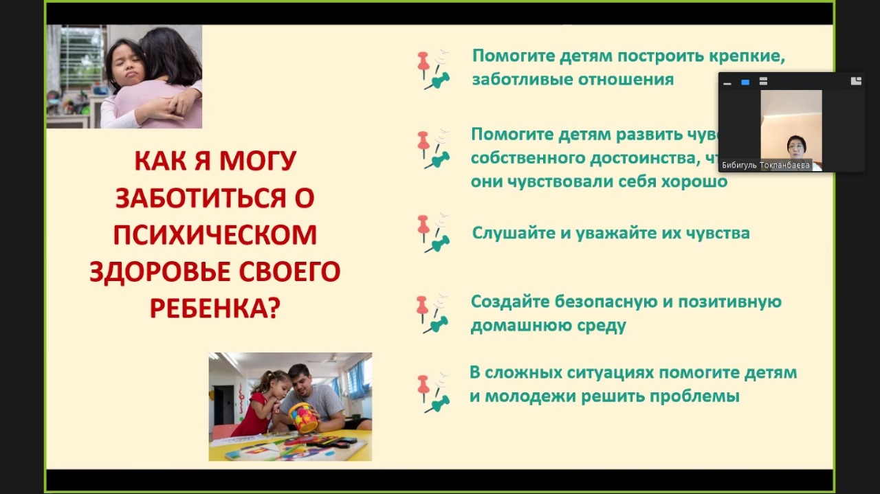 09 октября 2020 года отмечается как Всемирный день психического здоровья. Педагогом -психологом школы Токпанбаевой Б.К. были организованы и проведены онлайн-уроки для обучающихся 8,9 классов по теме «Мое психическое здоровье» и онлайн-встречи с родителями по теме: «Психическое здоровье детей».