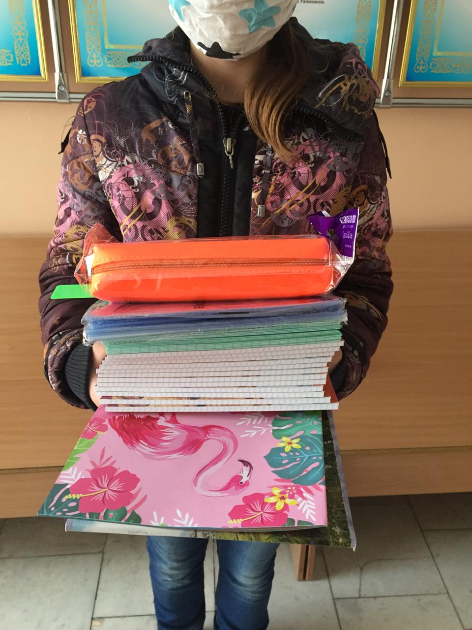 Каникулы в нашей школе начались с благотворительной акции "Помогая другим, мы делаем мир лучше" Обучающиеся школы из нуждающихся семей получили канцелярские наборы.