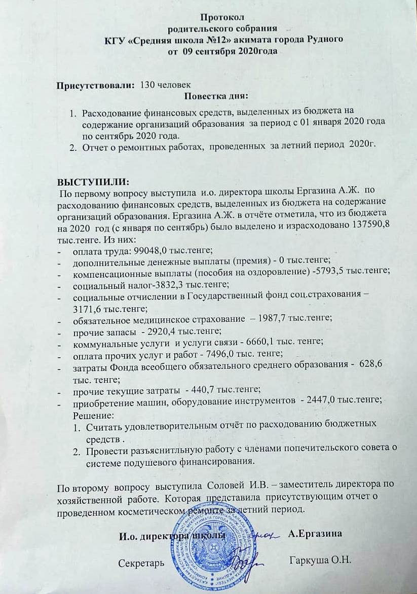 Акты и протоколы по проверке школьной столовой