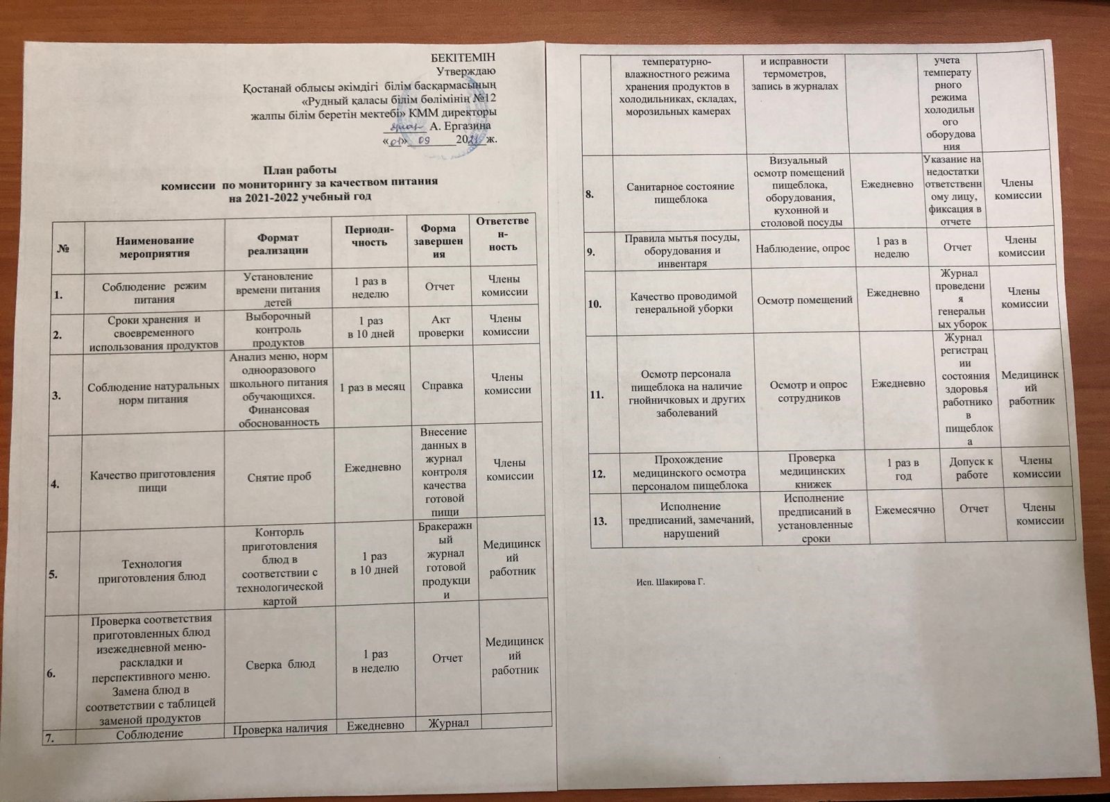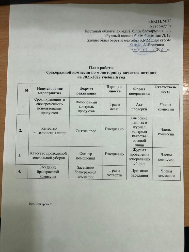 План работы бракеражной комиссии по мониторингу качества питания на 2021-2022 учебный год