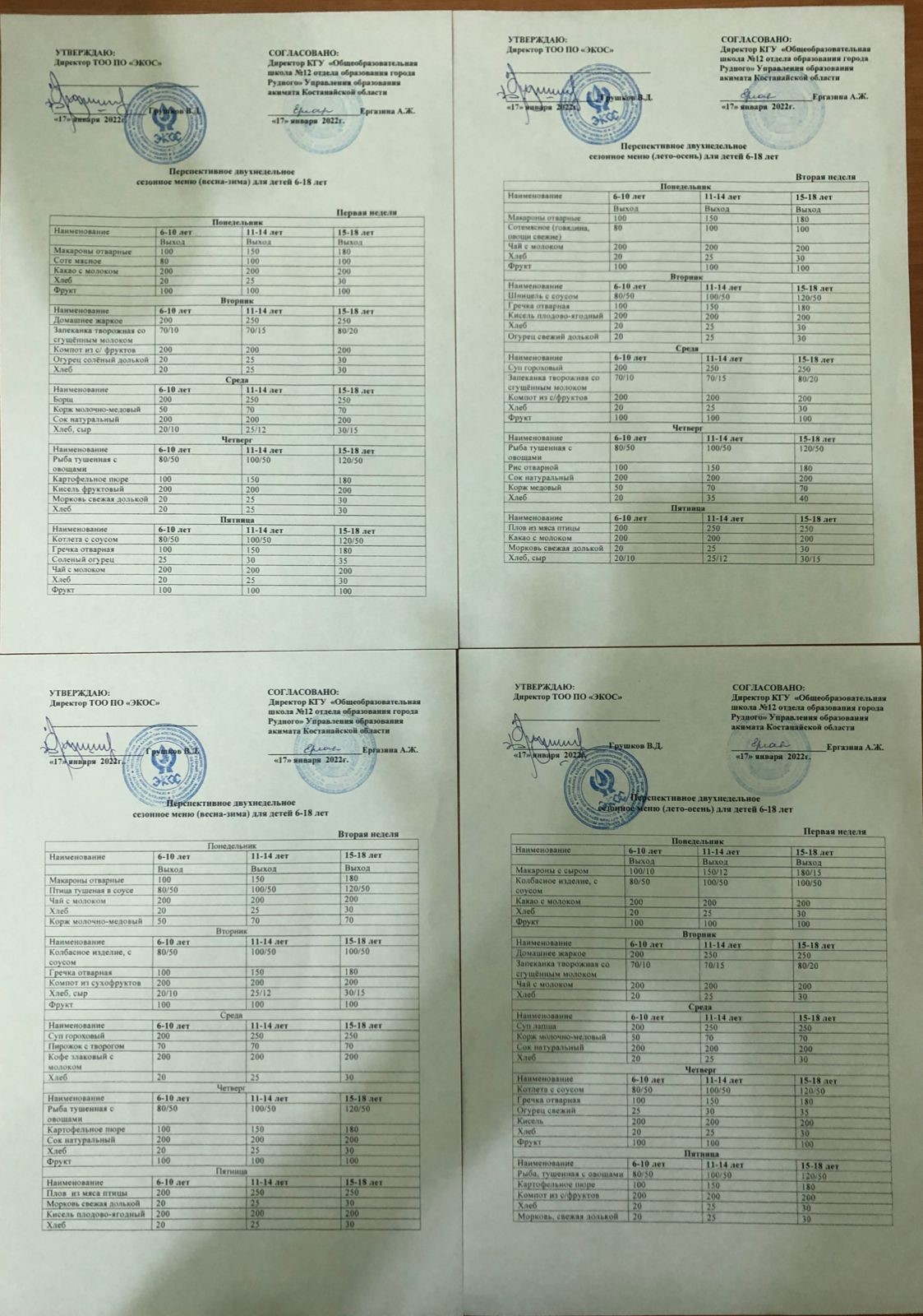 Перспективное двухнедельное сезонное меню 2021-2022 год