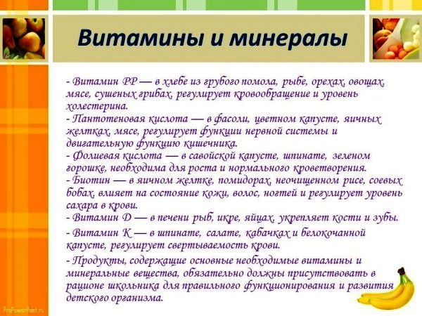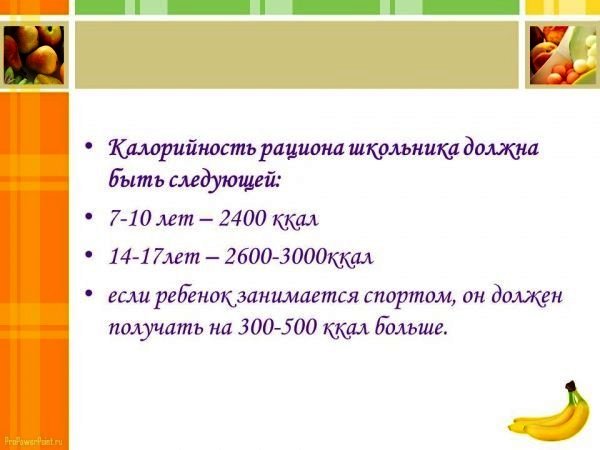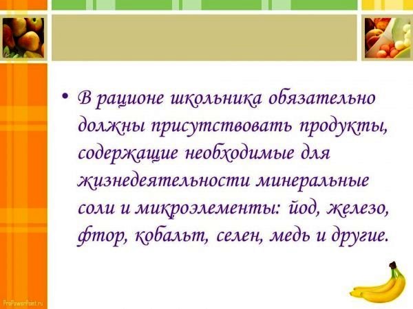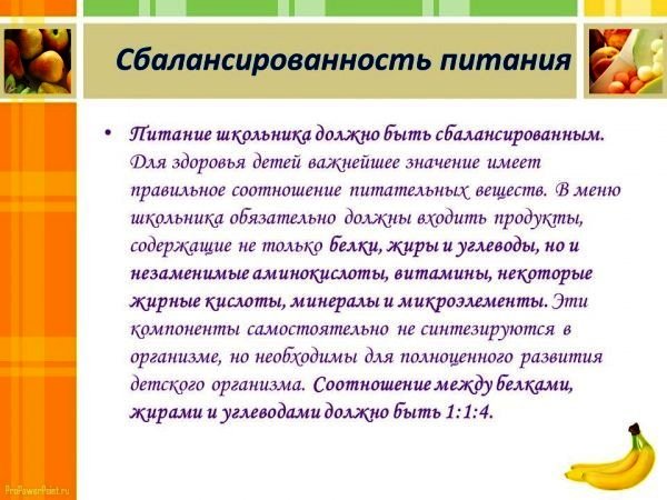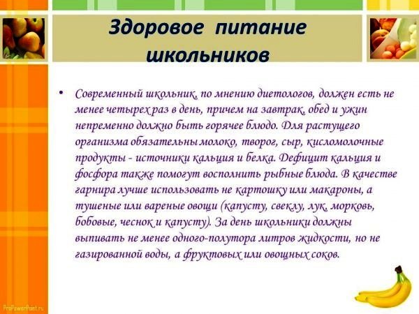 о правильном питании детей школьного возраста