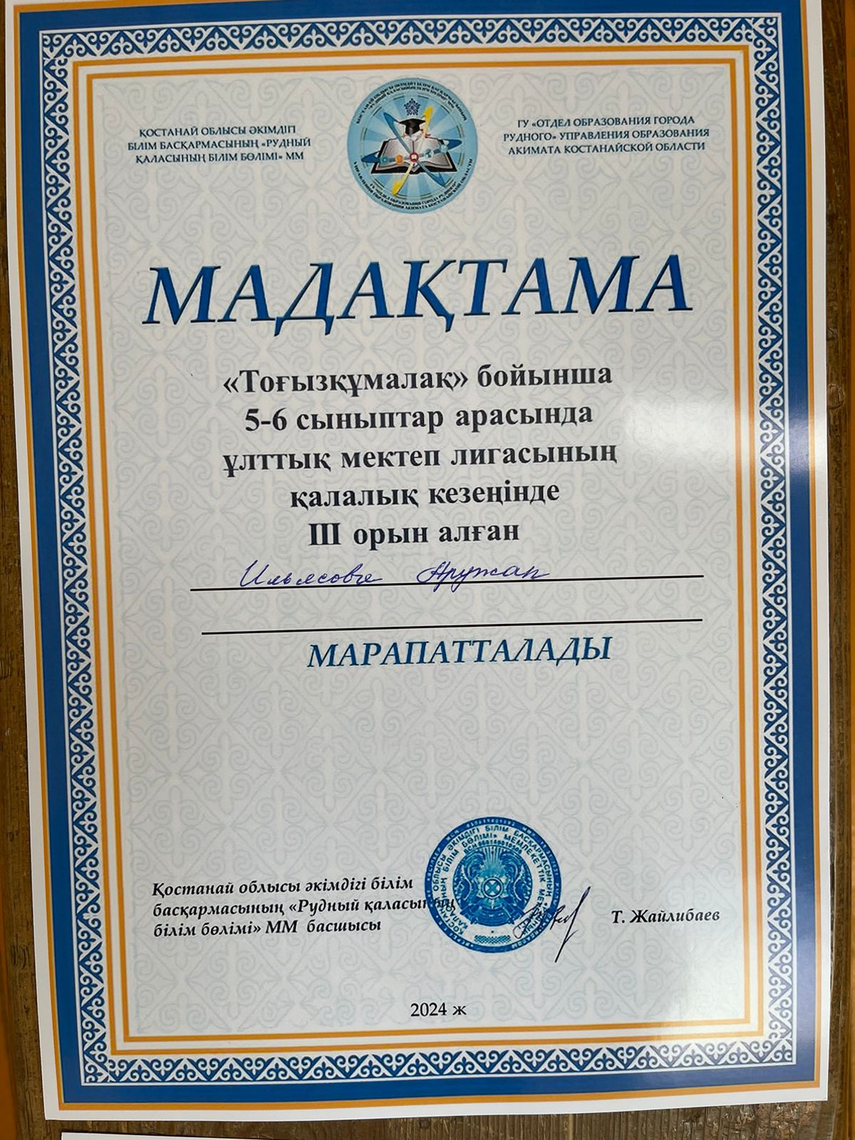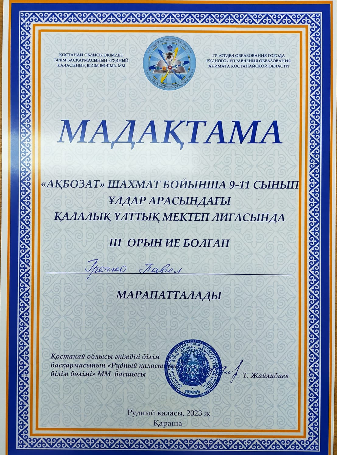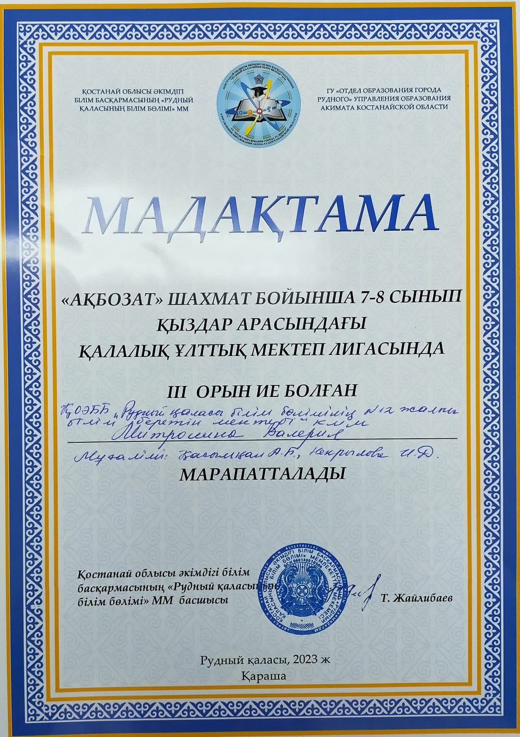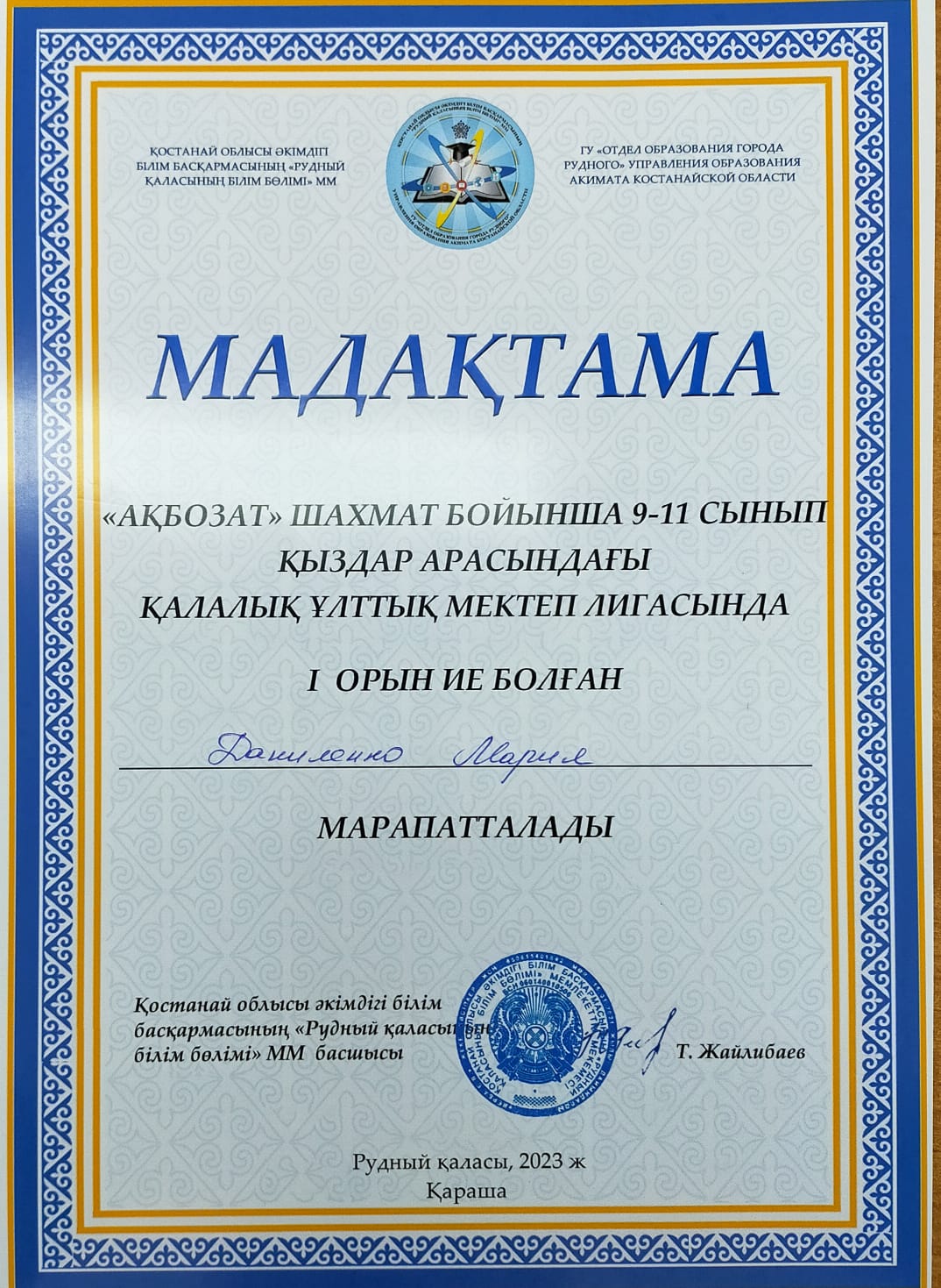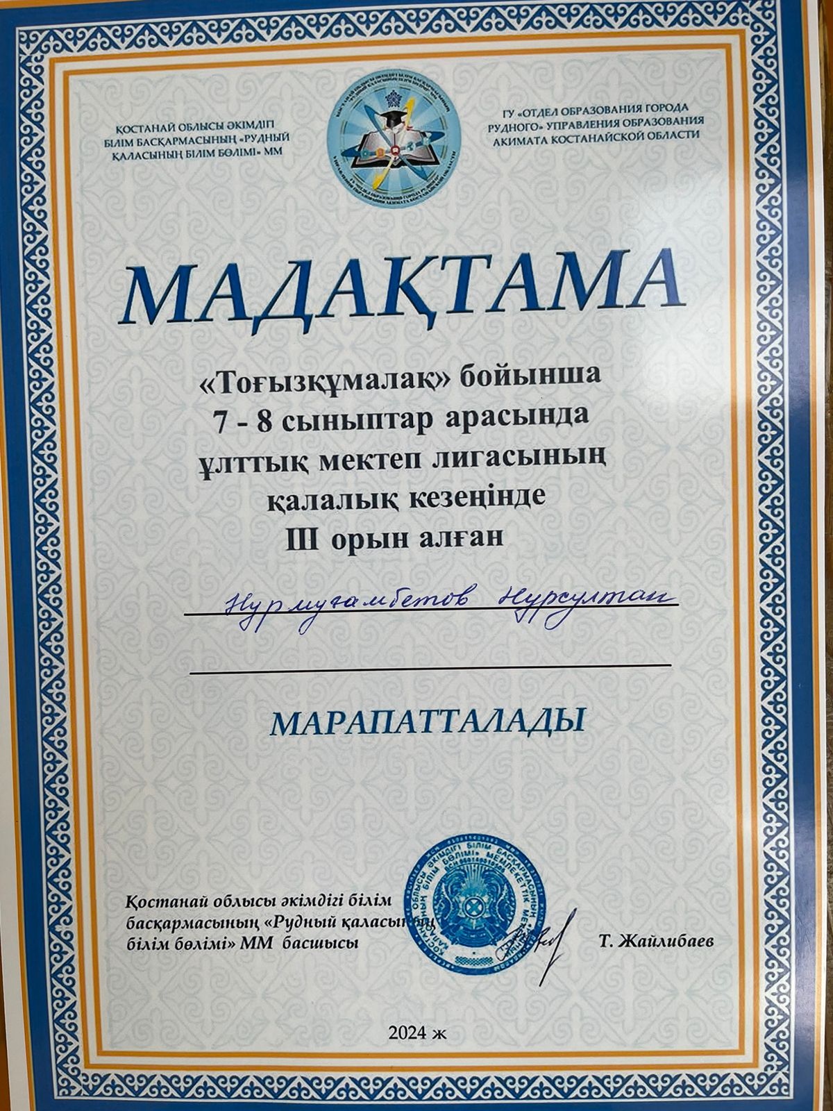 7 февраля прошли соревнования по тогыз кумалак "Национальная школьная лига" среди учащихся школ города. Ученики нашей школы Нурмагамбедов Нурсултан 8 А класс, и Ильясова Аружан 6 класс - заняли 3 место.