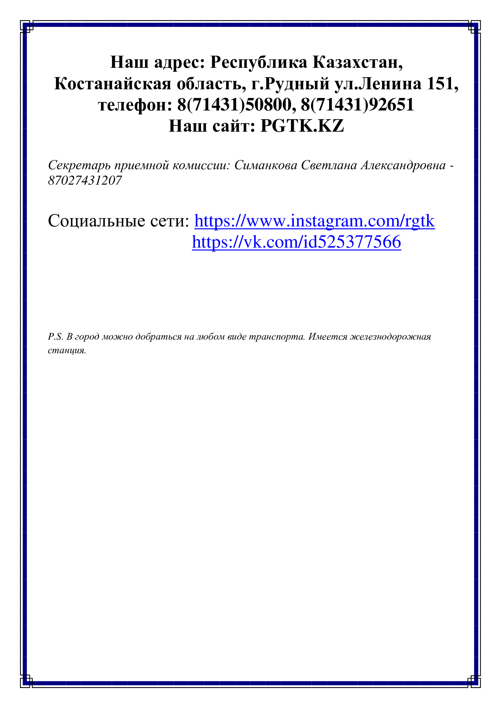 День открытых дверей - РПТК - РКСТ - РГТК - РСГК - РКТС